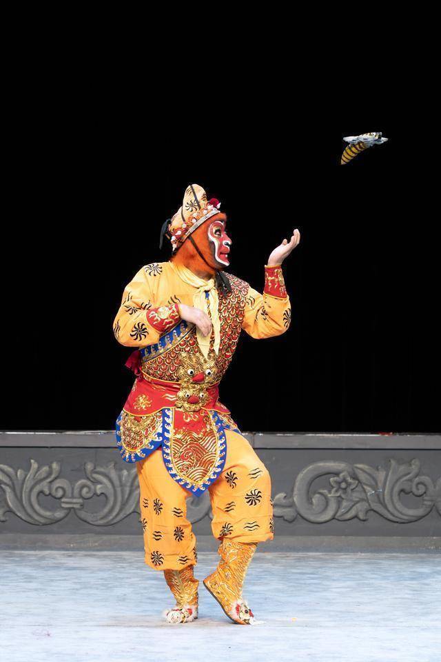 2025年,创新进入新阶段,剧团对《孙悟空三打白骨精》进行了全面的科技升级,深度融合无人机编队表演、裸眼3D视觉特效等前沿技术,在浙江金华永康新落成的专业化剧场成功公演,开创了沉浸式观演的新体验。《孙悟空三打白骨精》不仅保留了婺剧高亢激越的唱腔、精湛的武功把子,更通过科技手段重构了西游记的奇幻世界,让腾云驾雾、七十二变、天兵天将等场景以前所未有的震撼方式呈现于舞台,实现了古典名著与现代视觉语言的跨时空对话。剧中最令人瞩目的“变脸变装”片段由剧团一级演员汤盛存演绎,她饰演的白骨精在短短数秒内,接连完成三次变脸变装,视觉效果丝滑流畅,成为演出中的“名场面”。
